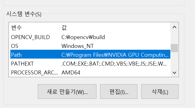 3) PC내 제어판 > 고급 시스템 설정변경>환경변수 >시스템 변수 화면까지 들어간다
