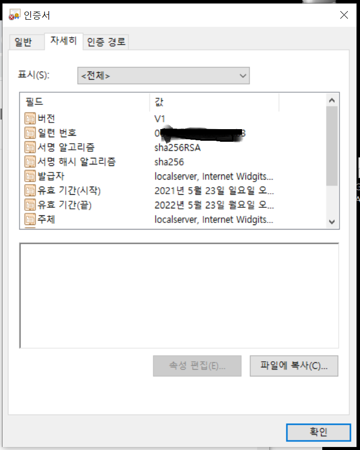 발급된 CRT를 더블 클릭하여 확인할수 있다